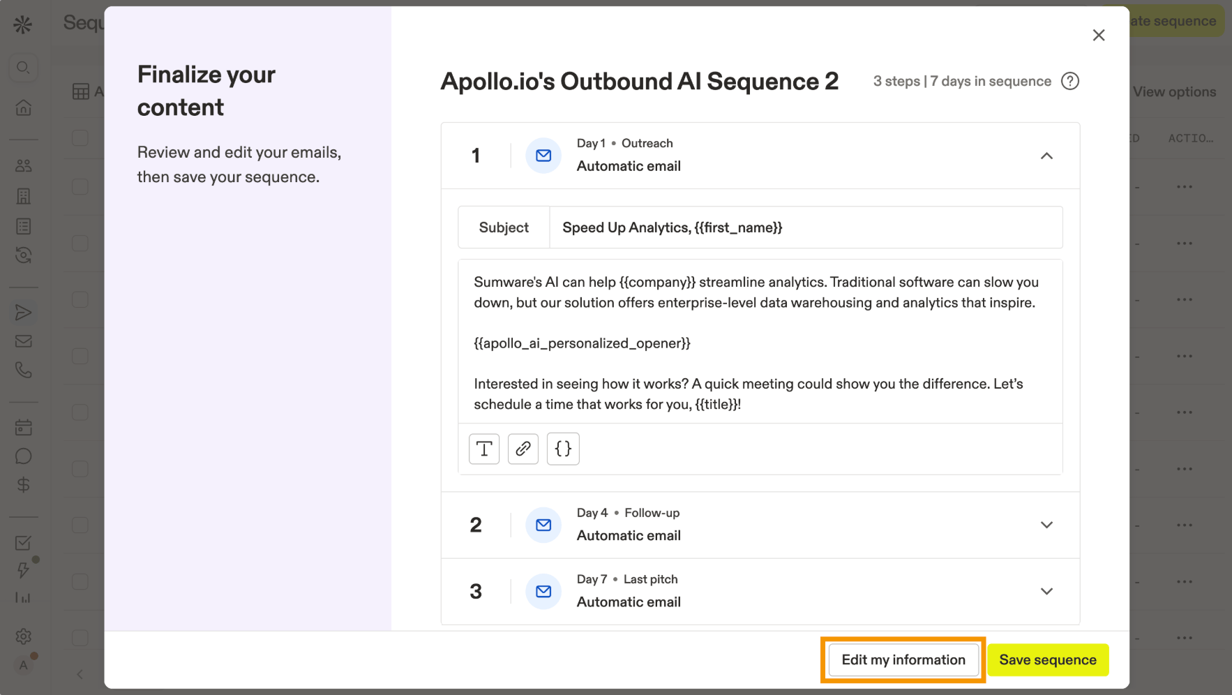 Apollo.io platformu, dış uygulama kullanmadan sistem içinden ileti (e-posta) göndermeye olanak tanır.