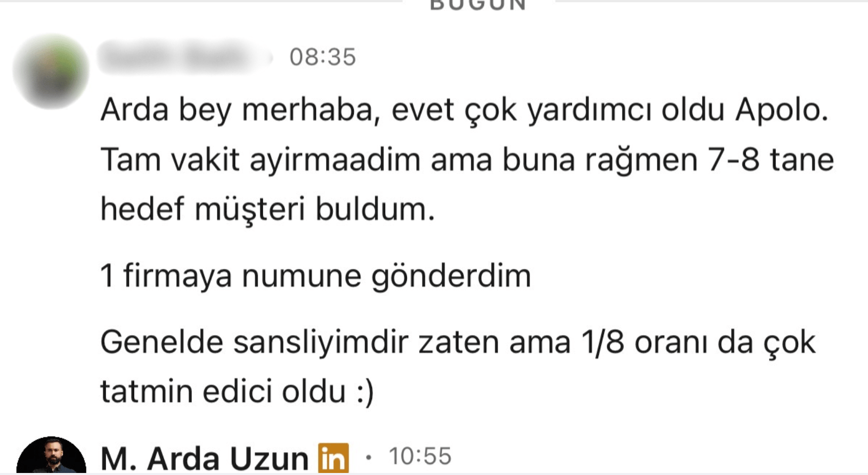 Apollo.io ile kısa bir sürede müşteri bulan bir kullanıcının yorumunu okuyabilirsiniz.